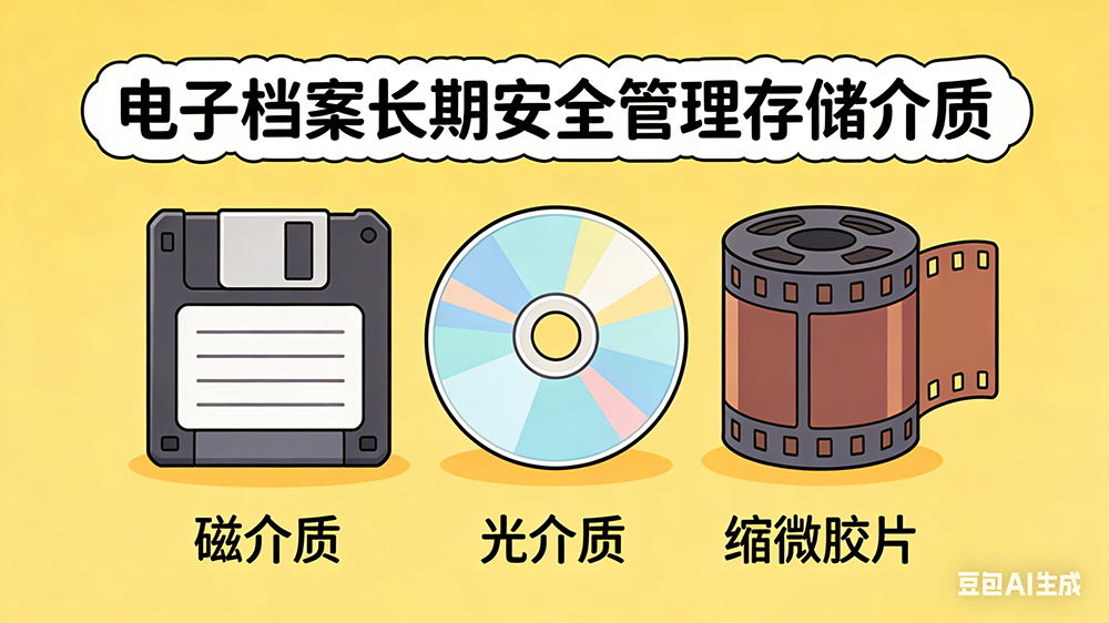 三、针对档案政策法规要求,符合电子档案长期安全管理要求的存储介质,主要有磁介质、光介质、缩微胶片三种。